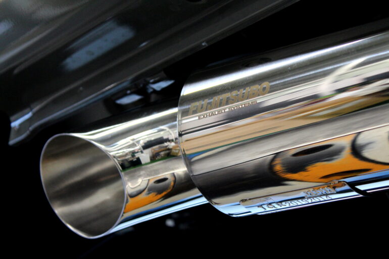 鏡面に磨き上げられたステンの質感。これがカスタムマフラーの醍醐味!
