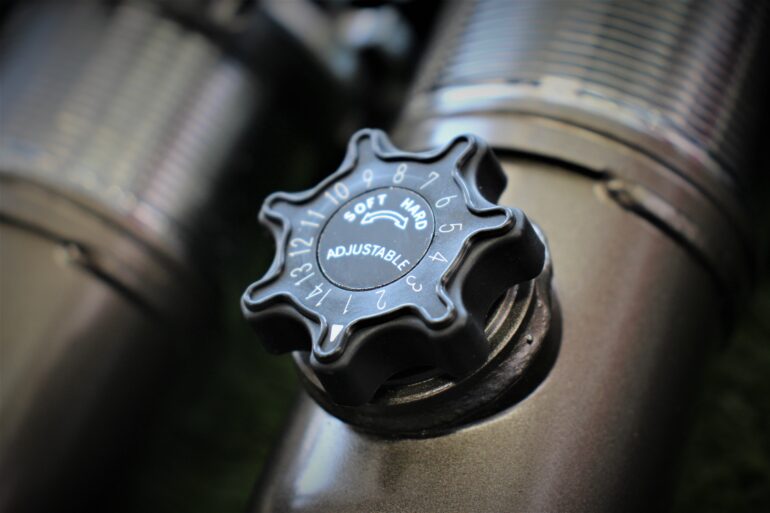 フロント・リア共に14段の減衰調整機能付き