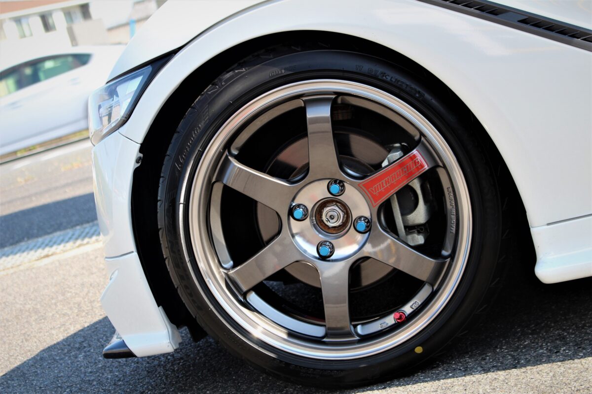 フロント6.5J、リアには7.0Jのキッチリ太履き仕様。