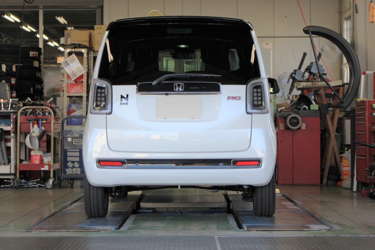 N-ONE RS(JG3)にBLITZ車高調 & フジツボマフラー装着!理想のローフォルムと心躍るサウンドを手に入れる。