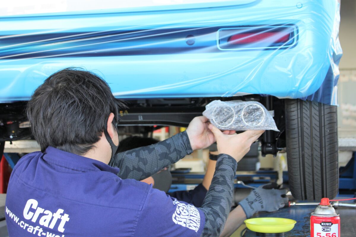 ■視覚的な魅力とワクワクするサウンドを! クルマ好きにとって無視できないこだわりのカスタムと言えば、それは「マフラー交換」 ドレスアップのカッコ良さだけでなく、排気音の変化や排気効率アップによる走行性能のパフォーマンス向上などなど。 沢山の魅力がある「マフラー交換」が本日のクラフト四日市店のご紹介となります。 先ずは純正マフラーを外していきます。 今回の交換する車両は「N-ONE RS」JF3で、この車両の厄介なポイントとして… フロントからリアまで1本ものとなっている点ですね。 当店ではリフトがあるので、高く上げてしまえば交換にそこまで問題ないですが、自身で交換をやろうと思うと中々マフラーが抜けないという難点があったりしますね。 ■柿本改GTbox06&S 選定したマフラーは老舗マフラーメーカー柿本改から「GTbox06&S」 スポーティーなルックスとチタンフェイステールでインパクト満点なスポーツマフラー。 【BEFORE】交換前の純正ではマフラーの存在感があまり感じられませんね… チタンフェイステールと柿本改のロゴがカッコ良いだけでなく、純正マフラーよりも迫力あるサウンドも魅力。 低回転のサウンドはやっぱり純正では感じられないワクワク感も体感。 だから「マフラー交換」はクルマ好きにとっておすすめなカスタム。 アルミホイールも新調したので、次回ブログでまたご紹介させていただきますね。 また次回のブログもよろしくお願いいたします♪ 管理番号:0212504271012 クラフト四日市店では7/12(土)~31(木)まで「夏のサスペンションフェア」開催中となります。 人気の3メーカー『HKS・BLITZ・TEIN』を対象に車高調ローダウンキャンペーン開催! 「通常割引からさらにお得になるチャンス」ですので、この機会をお見逃しなく!
