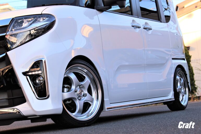 本日はタントカスタムのツライチセッティングを目指す為、マルチピースホイールをオーダーいただきました!!