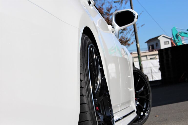 ローダウン済のお車に迫力満点の20インチホイールを装着です♪