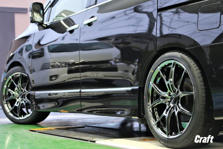 E52エルグランドはフロントのフェンダークリアランスが広いおクルマです。