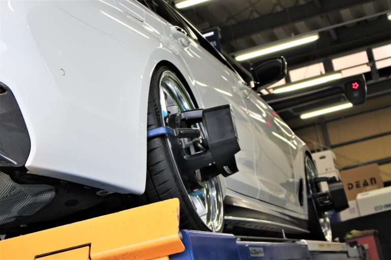 前後のキャンバー差が気になるということで、リアキャンバーを起こしました。