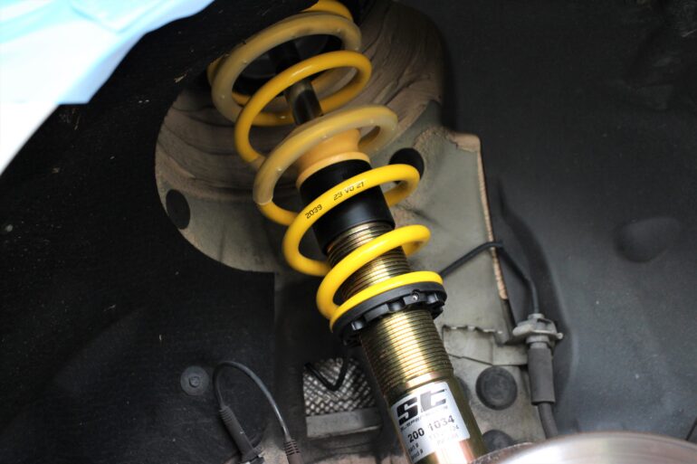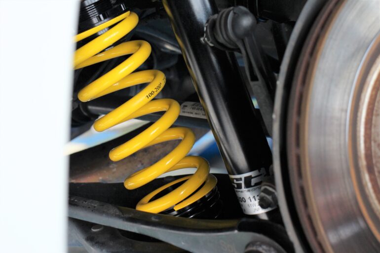 ローダウン後も快適に乗っていただけるようメカニック酒井ちゃんがキッチリ調整をかけてくれます