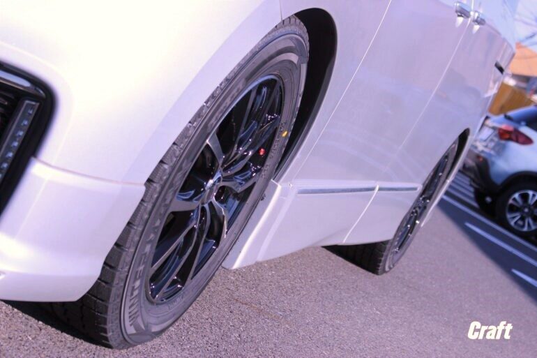 今までも冬用セットをお持ちでしたが、夏仕様に比べるとホイールが引っ込んで見えてしまうサイズでした。