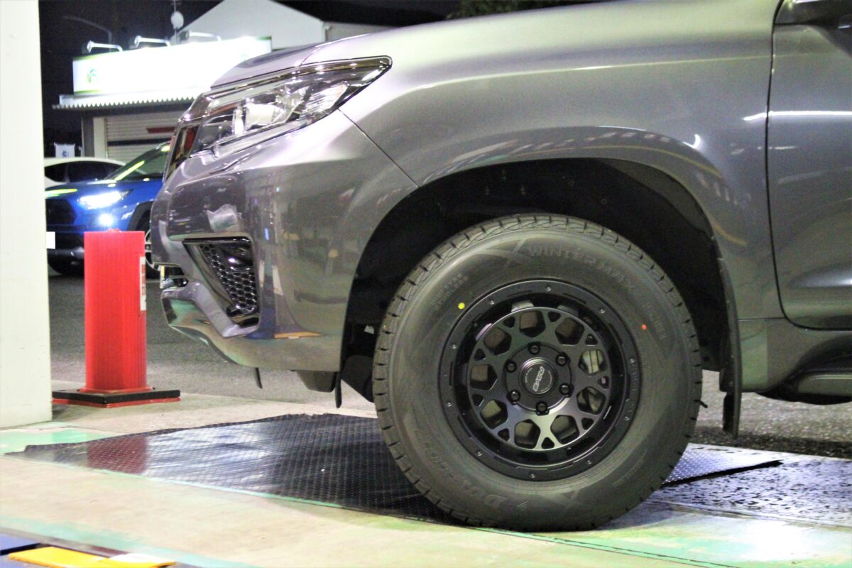 ■150プラド後期のスタッドレスタイヤ仕様。RAYS TEAMデイトナM9 ブラックエディションでキメる。