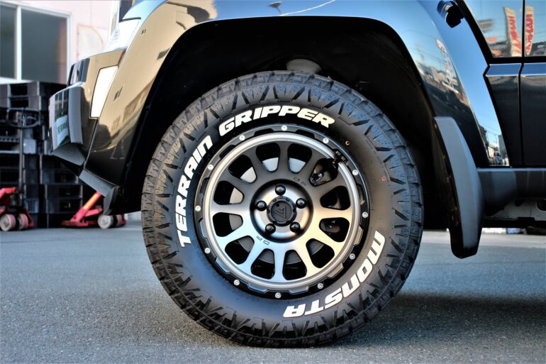 【ジムニーカスタム】オフ系タイヤと軽量ホイールの組み合わせ!オプカンとENKEIでかっこよく!