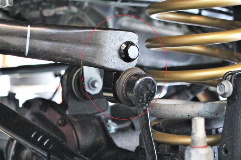 取付けるのが"スタビリンクエクステンション"。赤丸部がソレですね。