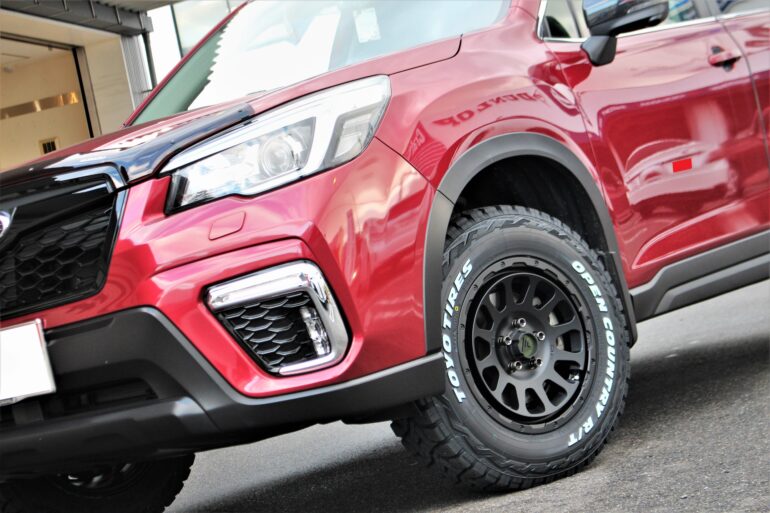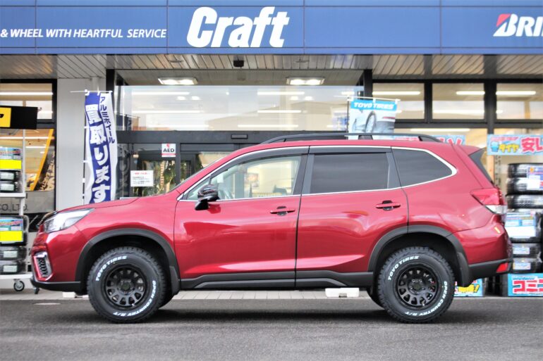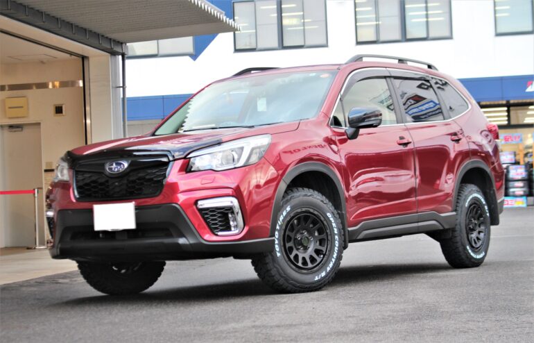 SK9型フォレスターをリフトアップ&タイヤ・ホイール交換でカスタムさせて頂きました。