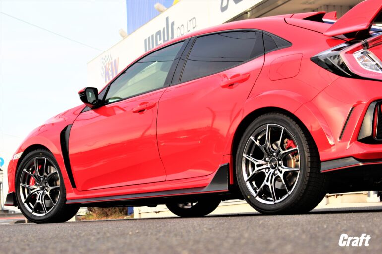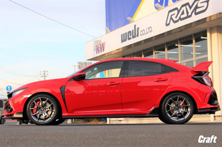 ■【FK8】冬のカスタムもスマートに!シビックタイプR × MIDレーシング R06 で魅せる冬スタイル スタッドレスタイヤシーズン真っ只中、シビックタイプRオーナーの皆様、冬の準備は進んでいますか? 「冬でもタイプRらしい走りとルックスを妥協したくない」 そんなオーナー様にぴったりのホイールがございます! 皆様こんにちは、クラフト鈴鹿店の森です! 本日は「ホンダ シビックタイプR(FK8)」のカスタムをご紹介させていただきます! ■MID RACING R06 今回チョイスしたのは、スポーツホイールの王道を行く6本スポークデザイン、「MIDレーシングR06」です。 このホイール、ただの6スポークではありません。 応力のかかりにくいトライアングル形状のスポークや、立体感を引き立てるコンケーブデザインなど、MIDらしい「機能美」が詰まった一品! 最新の解析技術によって駄肉を削ぎ落とした軽量造形は、ハイパワーなタイプRの足元に相応しいスペックを誇ります。 タイプRオーナー様にぜひ知っていただきたいのが、このR06の大きなメリット。 実はこちらのR06、「14R球面座仕様」となっており、ホンダ純正のナットがそのまま流用可能なんです! 通常、社外ホイールに交換する際は「テーパー座」のナットを別途用意する必要がありますが、R06ならその手間もコストも抑えられます。 オーナー様にとって非常に嬉しいポイントですよね(^v^*) ■DUNLOP WINTER MAXX 02 タイヤは、冬の定番ダンロップの「ウィンターマックス02」をセット。 18インチを選択することで、タイヤの選択肢も広がり、お値段もリーズナブルになるのは嬉しいですね♪ 【SIDE/BEFORE】 【SIDE/AFTER】 【AFTER】 ■WHEEL MID MIDレーシング R06 9.5J-18インチ 5/120 ■COLOR クリスタルブラック ■TIRE ダンロップ ウィンターマックス02 ■SIZE 245/40R18   ブルーのボディに、R06のシャープなスポークとクリスタルブラックのカラーが際立った仕上がりに! インチダウンによるムチッとしたサイドウォールが、タイプRの無骨なフェンダーラインと相まって、スタッドレスとは思えないほどの迫力を演出。 ブレンボの赤キャリパーもしっかり主張できるデザインなので、冬の間も愛車を見るたびに気分が上がること間違いなしです(^v^*) FK8のみならず、FL5、FD2はもちろん、FL1、FL4、FK7、etc… 「冬だってカッコいいシビックで走り抜けたい」 そんなこだわり派のオーナー様、ぜひクラフト鈴鹿店にご相談ください! 皆様のご来店をお待ちしております<(_ _)> クラフト鈴鹿店でした! 【開催中のイベント】 管理番号:0222512271011
