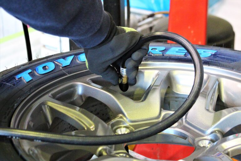 純正ホイールを用いたタイヤ交換作業でも雰囲気激変。