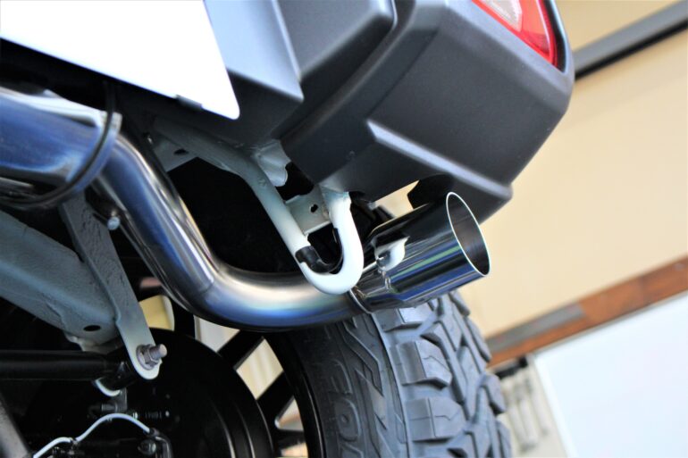 ホイール・サスペンションの他、マフラーも交換。