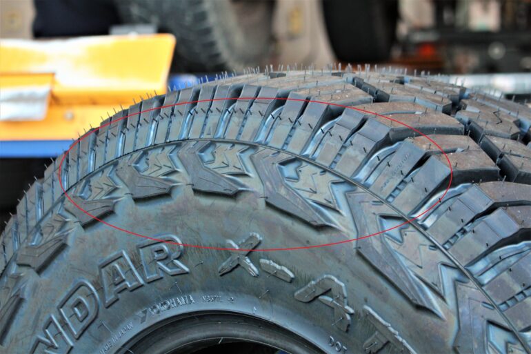 2種類のショルダーデザインを有するのもこのタイヤの特徴。