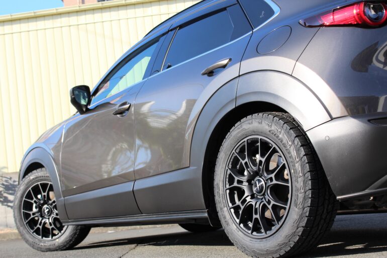 今回のCX-30はローダウン+オールテレーンタイヤという組合せです!