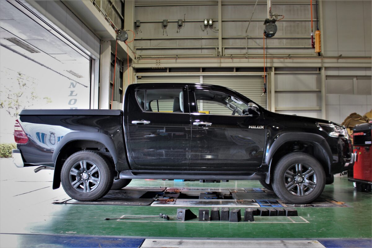 ノーマルではなかなかタイヤの外径を上げるのが難しいハイラックス。