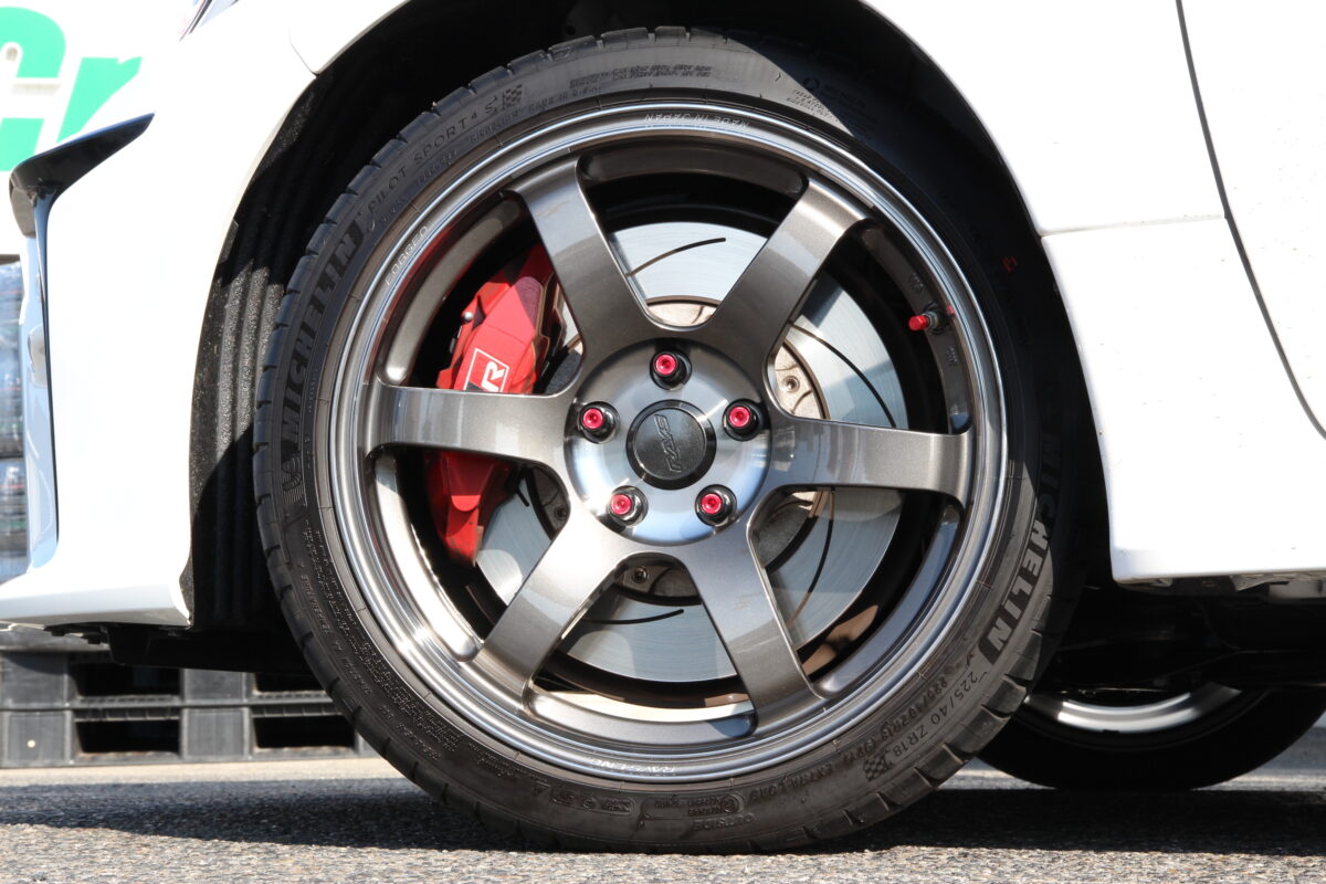 キャリパー・ナット・バルブと赤で統一されてGRらしいカラーマッチング
