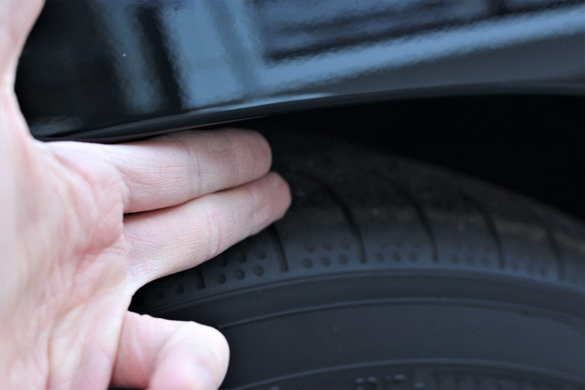 施工前のフェンダークリアランスは指3本分ほど。