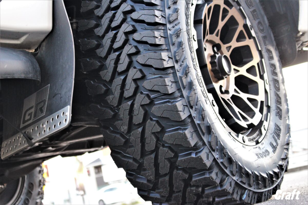 そんなおクルマなのでカスタムを希望されているオーナー様からもマッドテレーンを履きたいと言うお声が多いですよね。