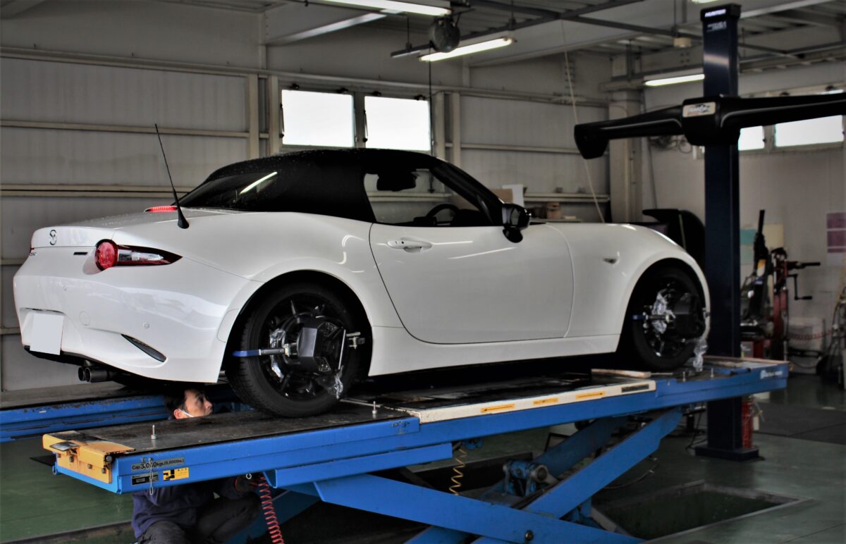 そして肝の四輪アライメント調整🔧ロードスターは調整箇所も多くシビア