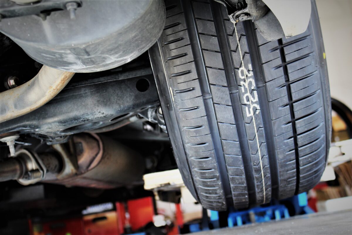 車高を落とし、タイヤ外径を変更。