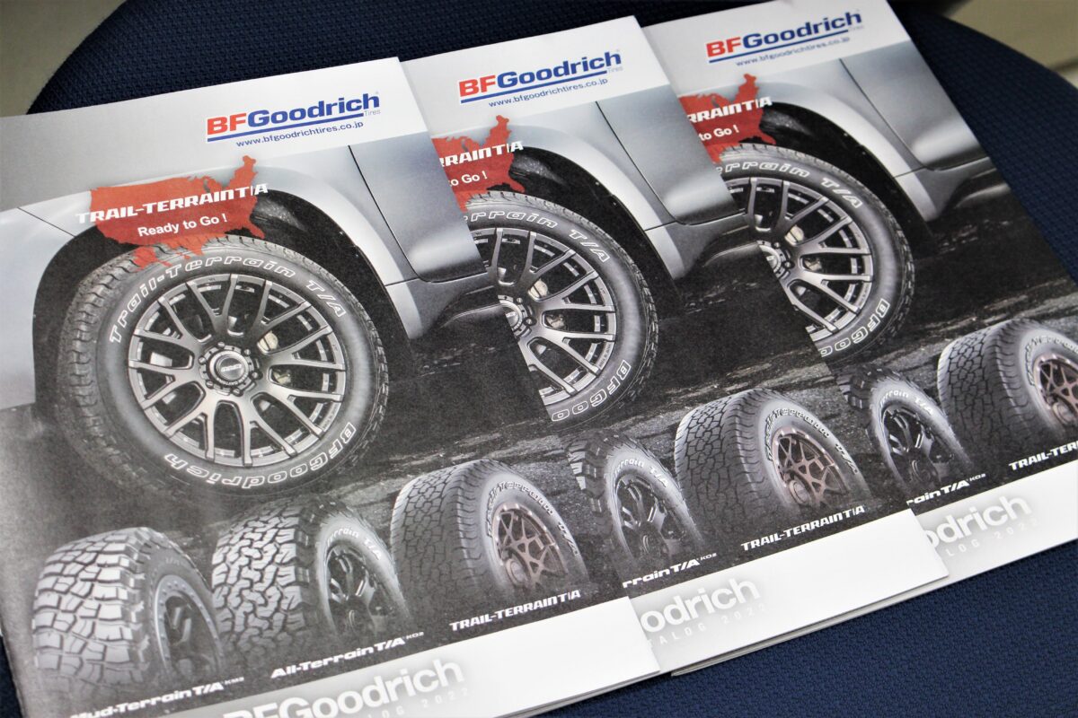 店頭にはBFグッドリッチ最新カタログが到着済み。