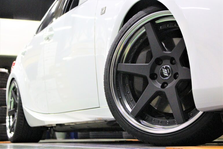 ローダウン済のこちらのお車には、当店大人気のWORKホイールを装着させて頂きました(*^^)