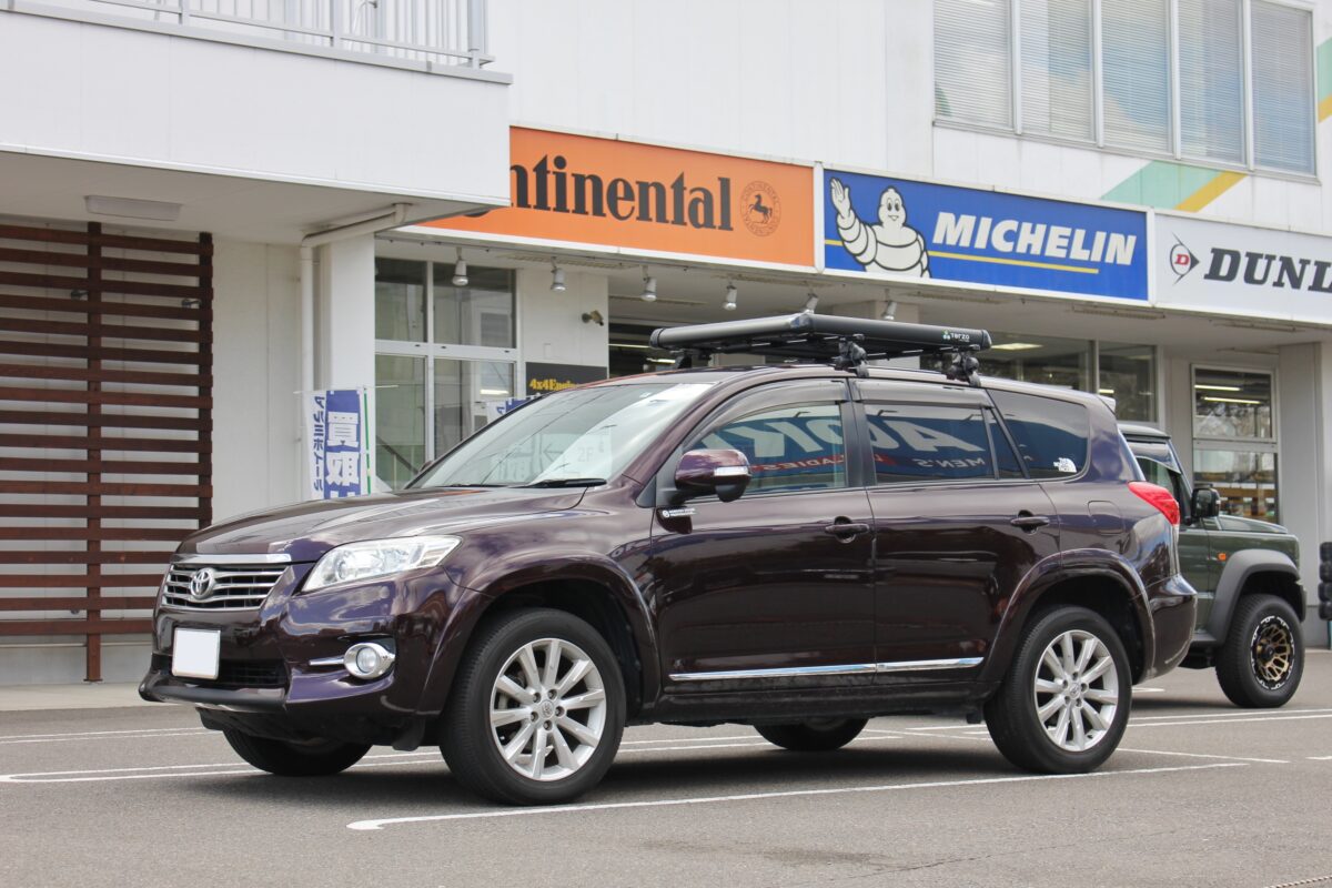 道具感のあるルーフラックですがカスタムしたクルマに装着すると、さらにオフロード感を演出してくれるカスタムアイテムに。