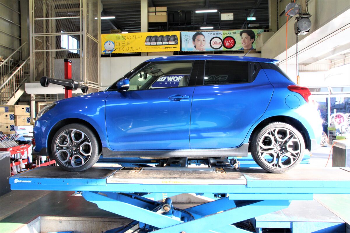 スイスポは17インチでのカスタムが多い当店ですが今回は18インチ。