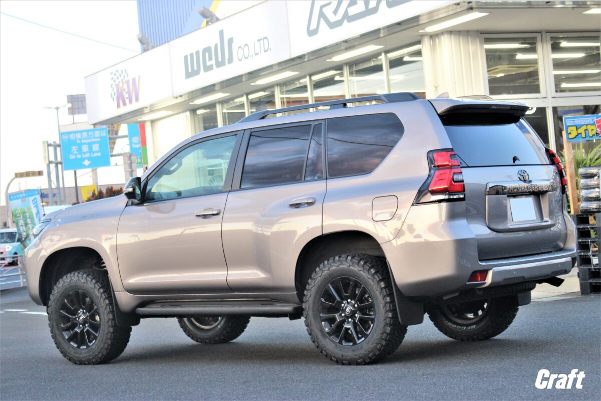 本日のご紹介はリフトアップ&タイヤ交換を行ったG様・150系プラドとなります。