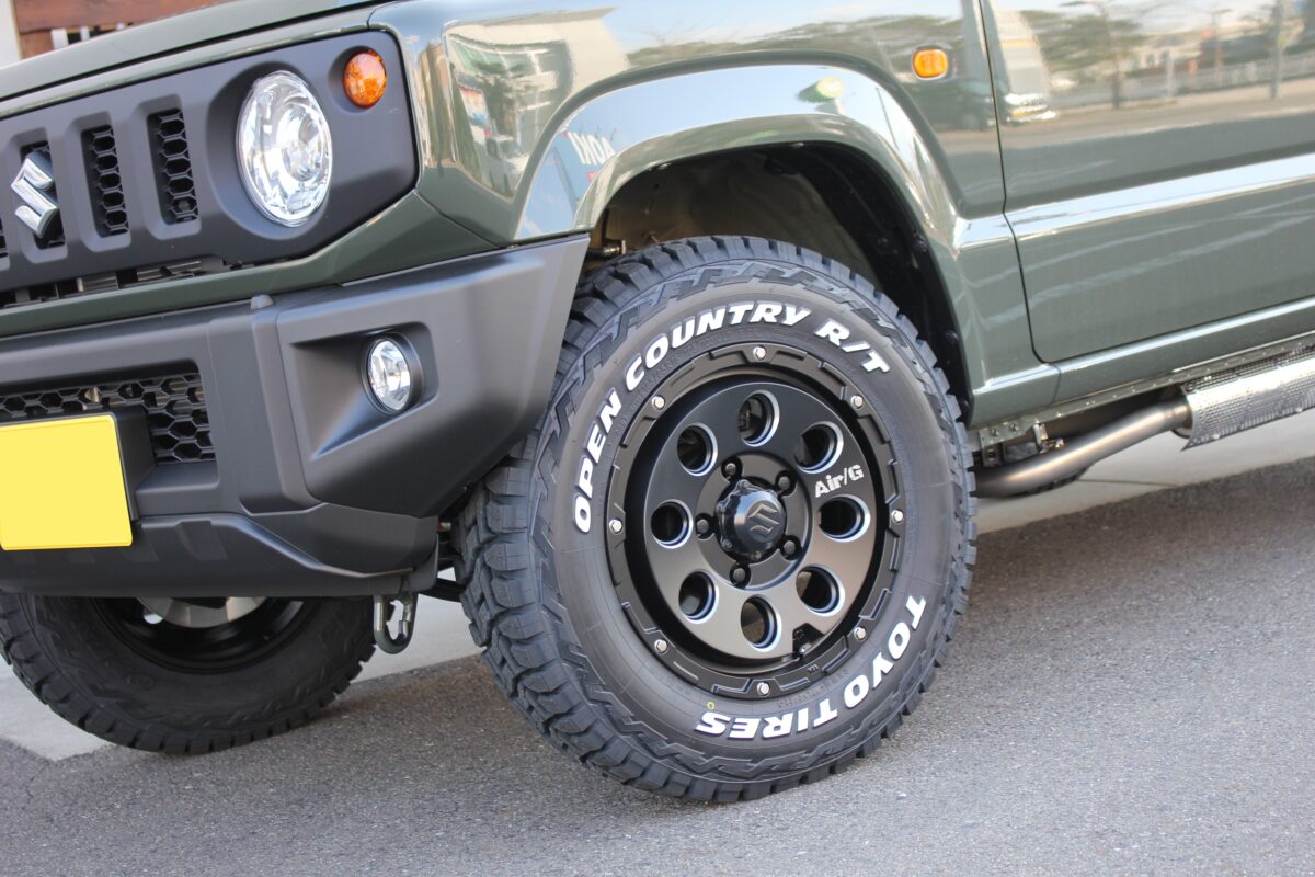 【ジムニーカスタム】オフ系タイヤと軽量ホイールの組み合わせ!オプカンとENKEIでかっこよく!