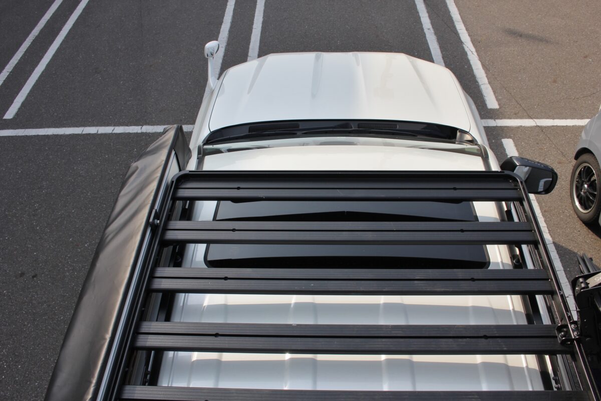 ルーフラックは、ローマウントデザインで軽さと強度を両立したアルミ製。