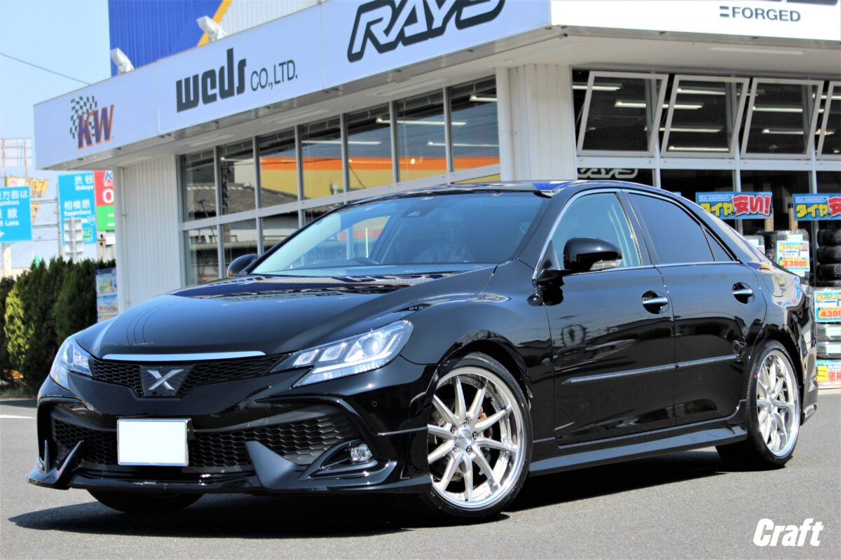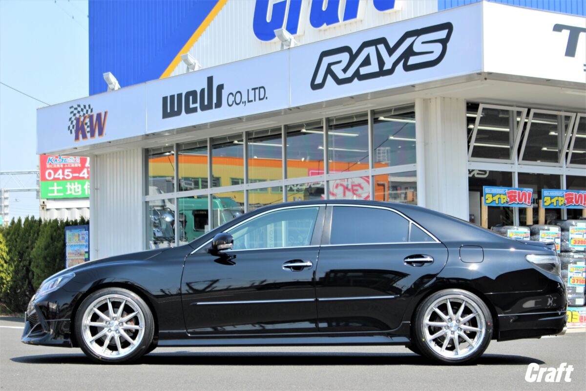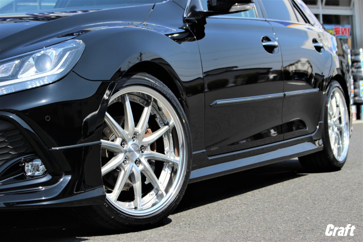 見ての通り、O様・マークXは車高調にてローダウンを行っているおクルマ。