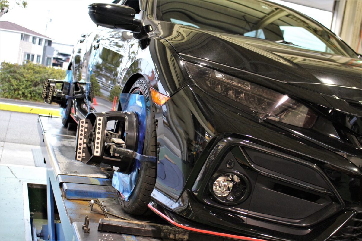 潔くペタリとローダウン後はアライメントで総仕上げ。