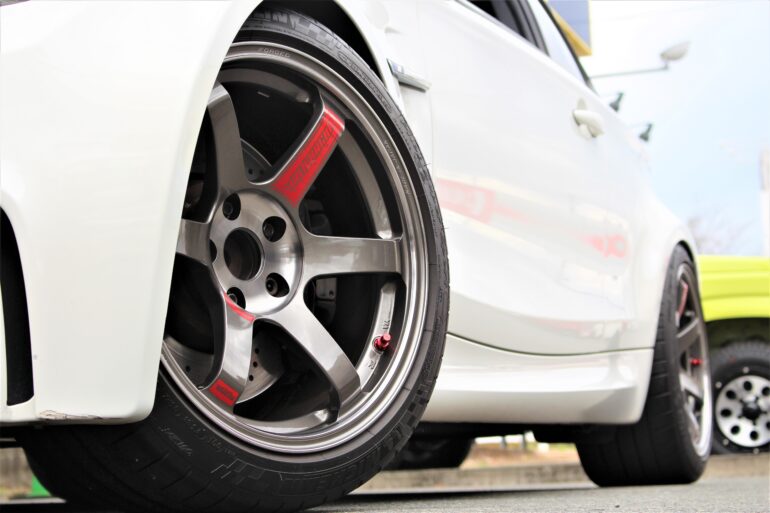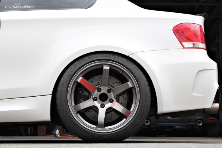 ということで、ホイール・タイヤサイズも通常のE82よりエグいサイズが取付可能となります。