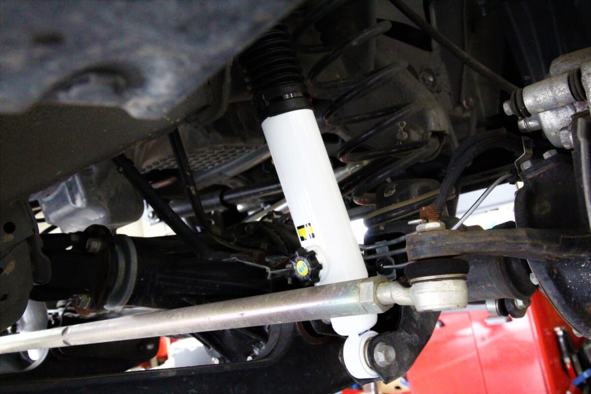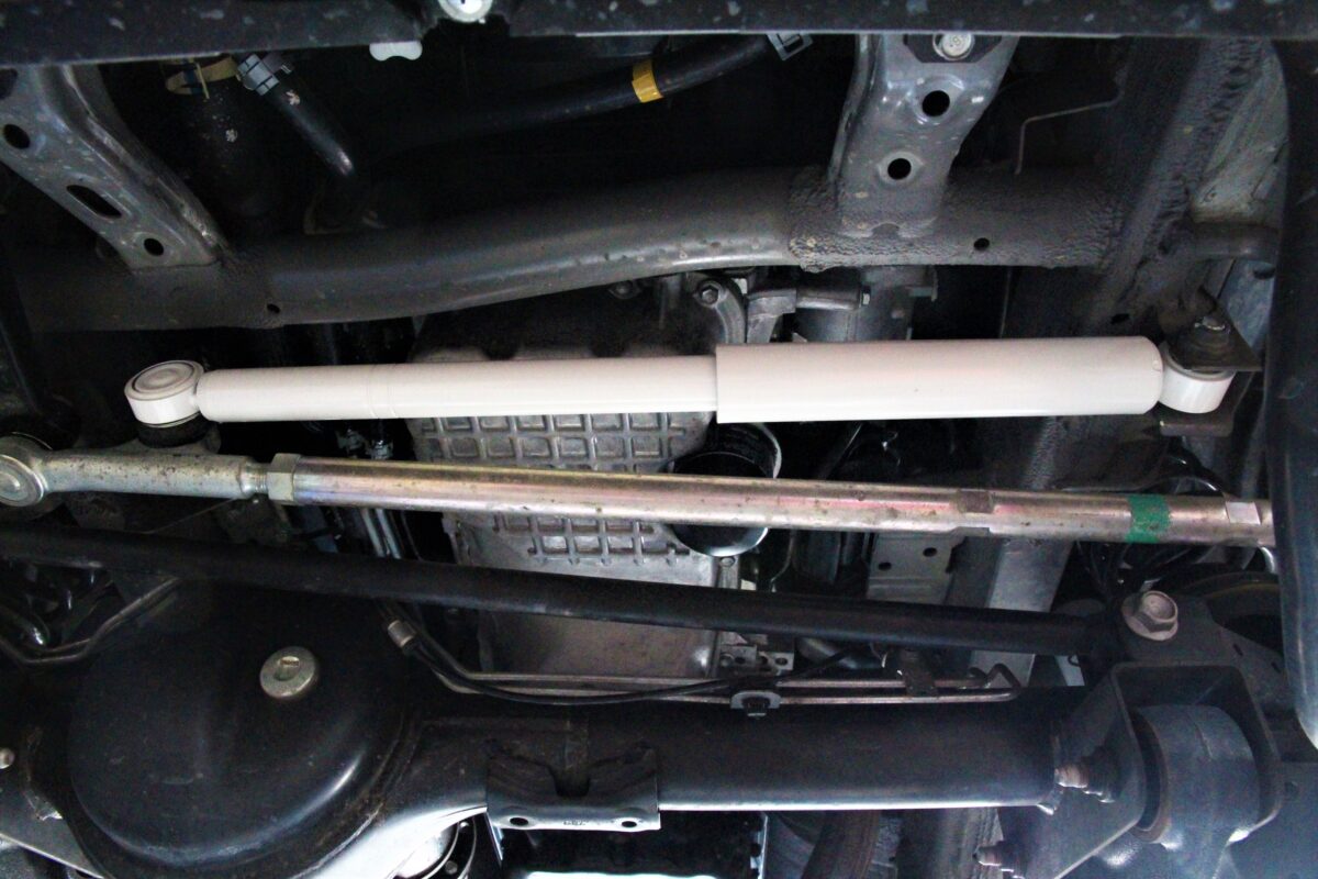 減衰調整機能も付いた4×4エンジニアリングのショックアブソーバー&ステアリングダンパーを装着