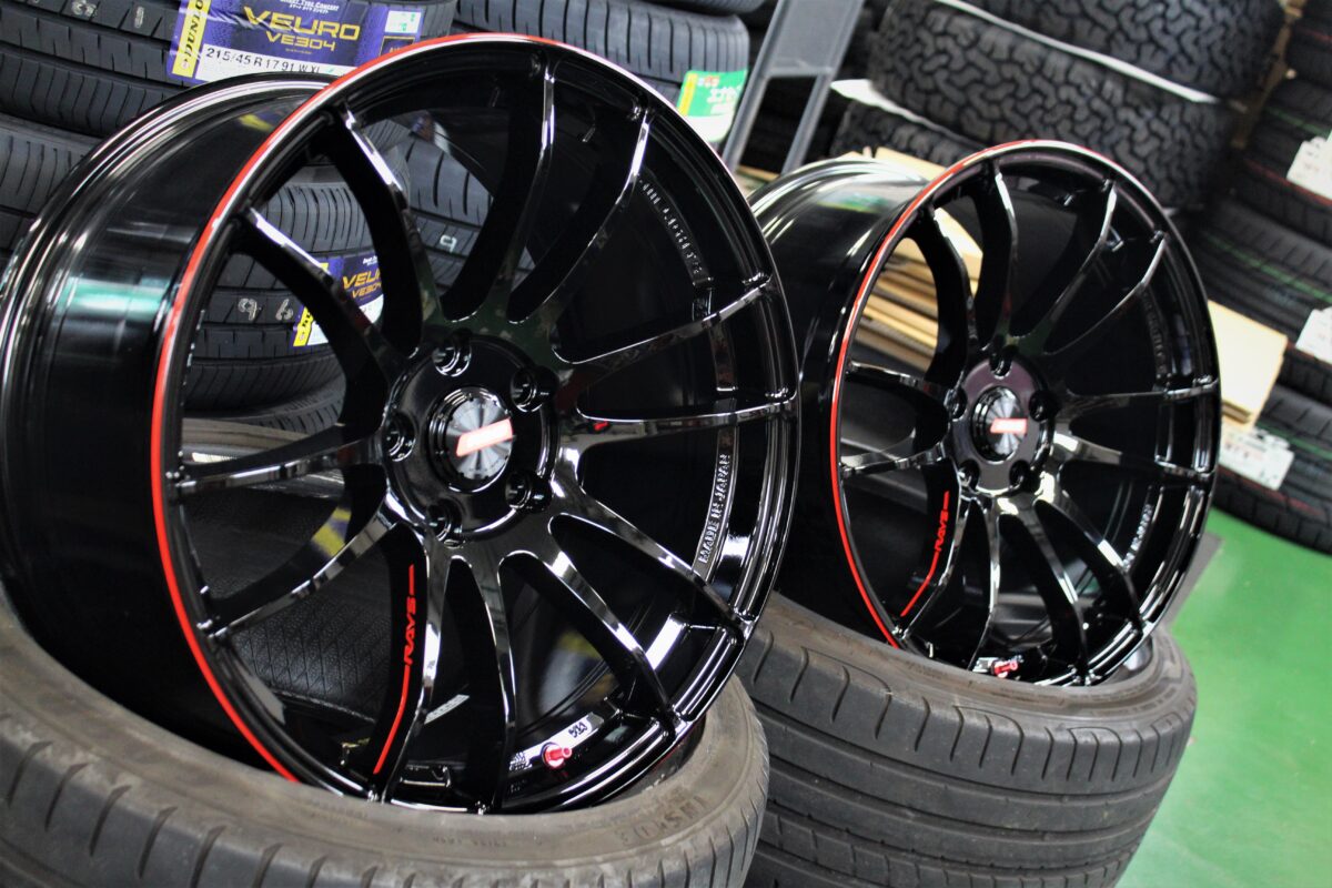 オーナー様に選んで頂いたホイールは赤いラインが特徴