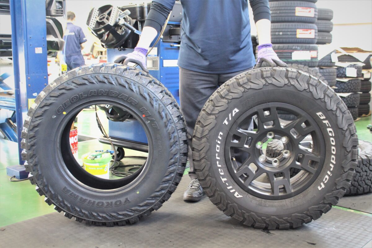 オーナー様はBFグッドリッチ KO2を装着されていますが今回は左側のヨコハマ ジオランダーMT G003に変更