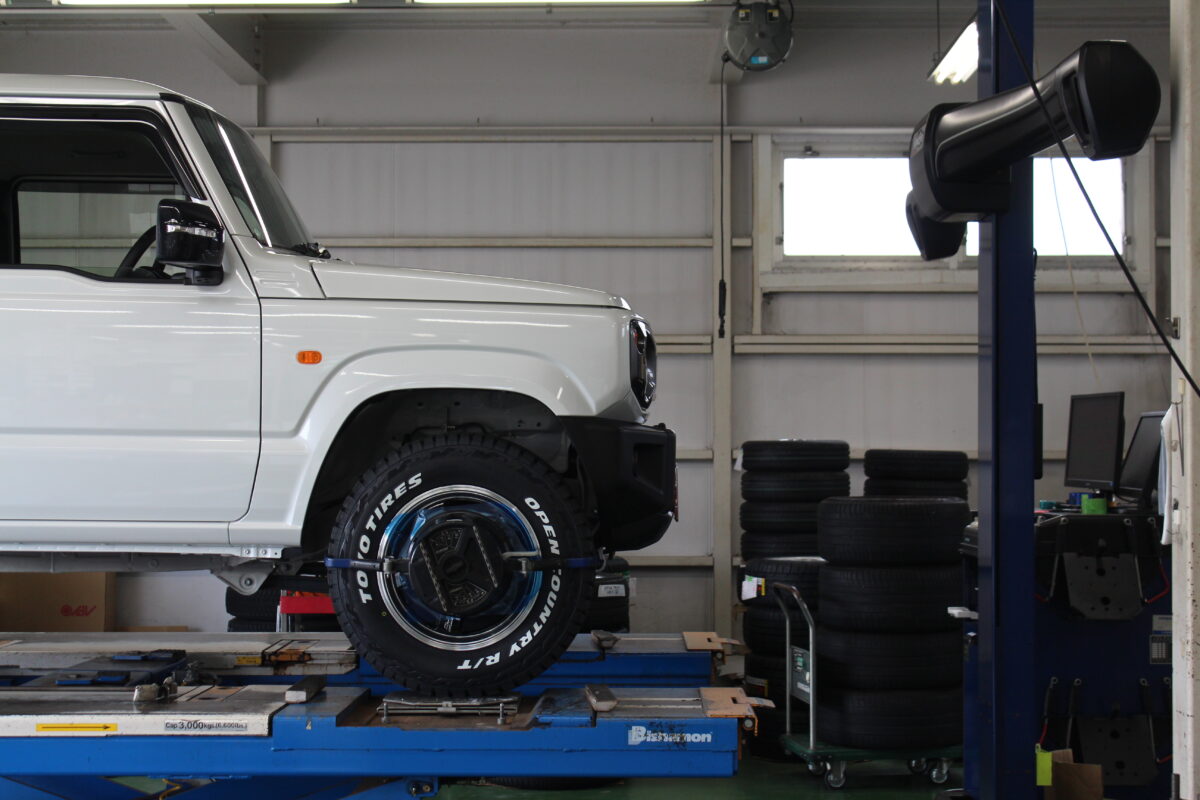ジムニーの気になる前下がりをリフトアップしながら補正しました!!