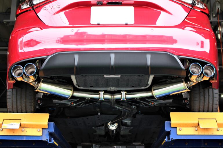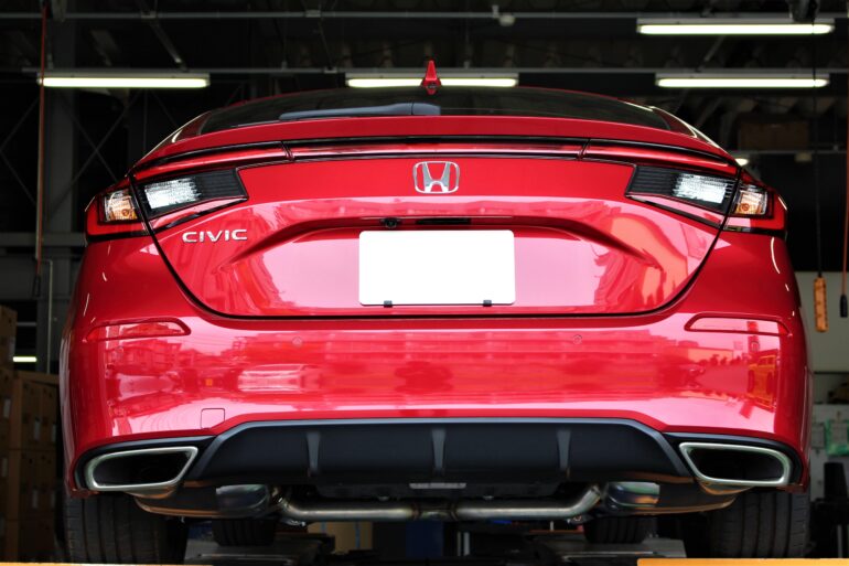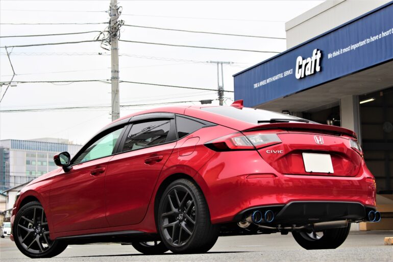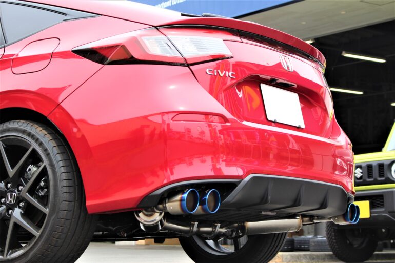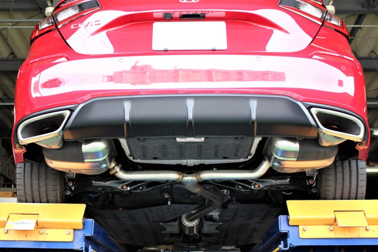 まずこちらの赤いシビックには社外マフラーを取付させて頂きます!