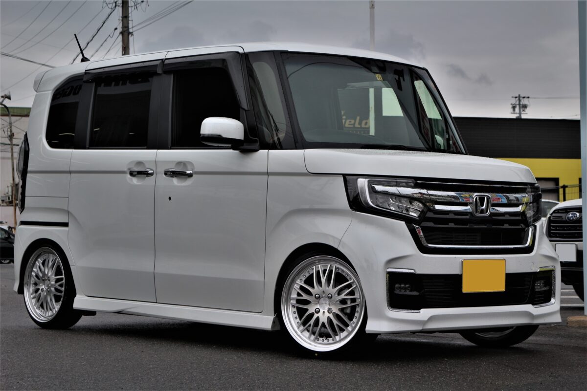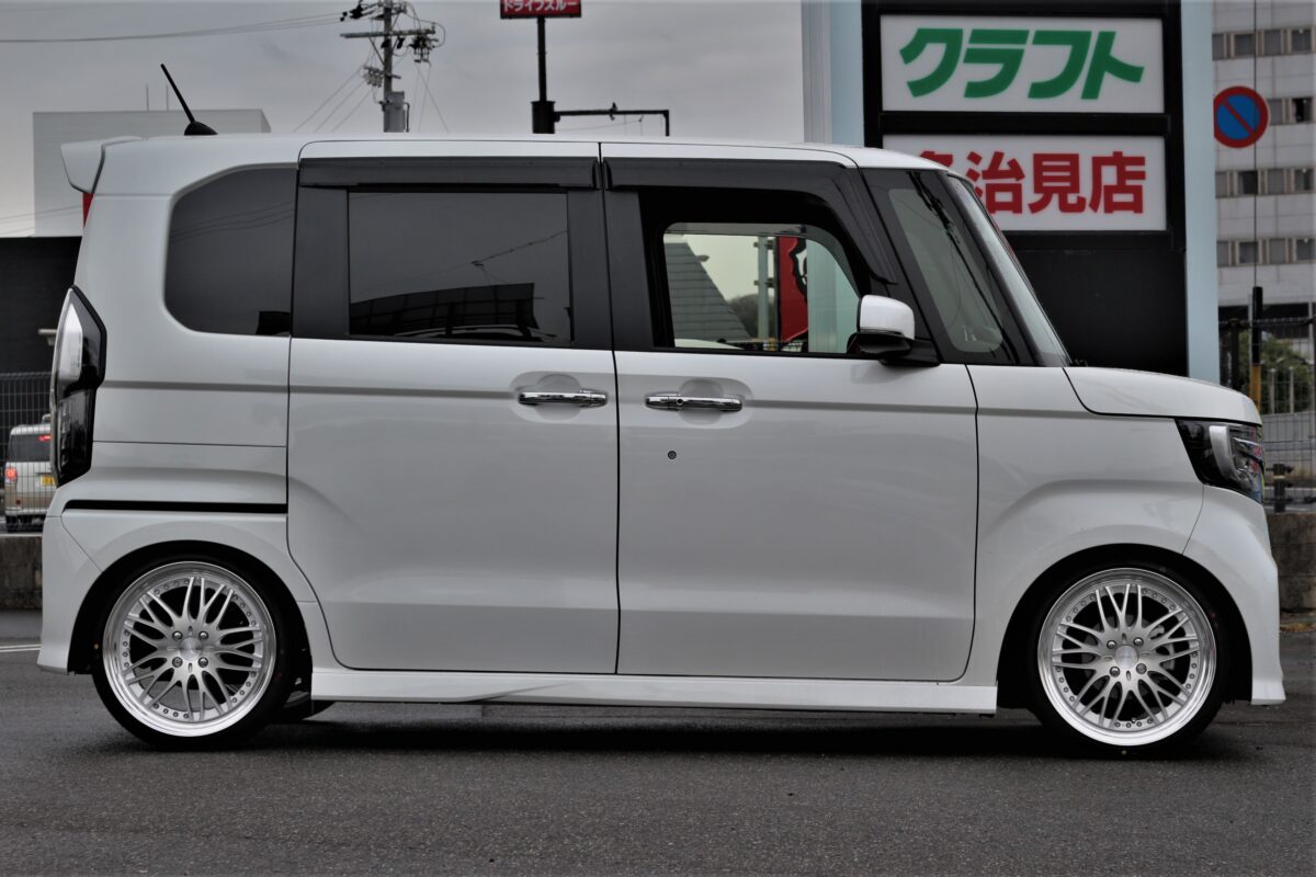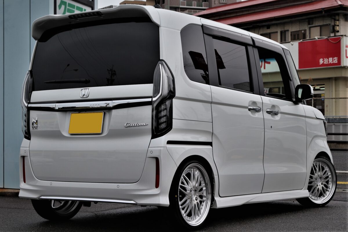 ■N-BOXカスタムをローダウン後にレオンハルトをツライチで装着デス。