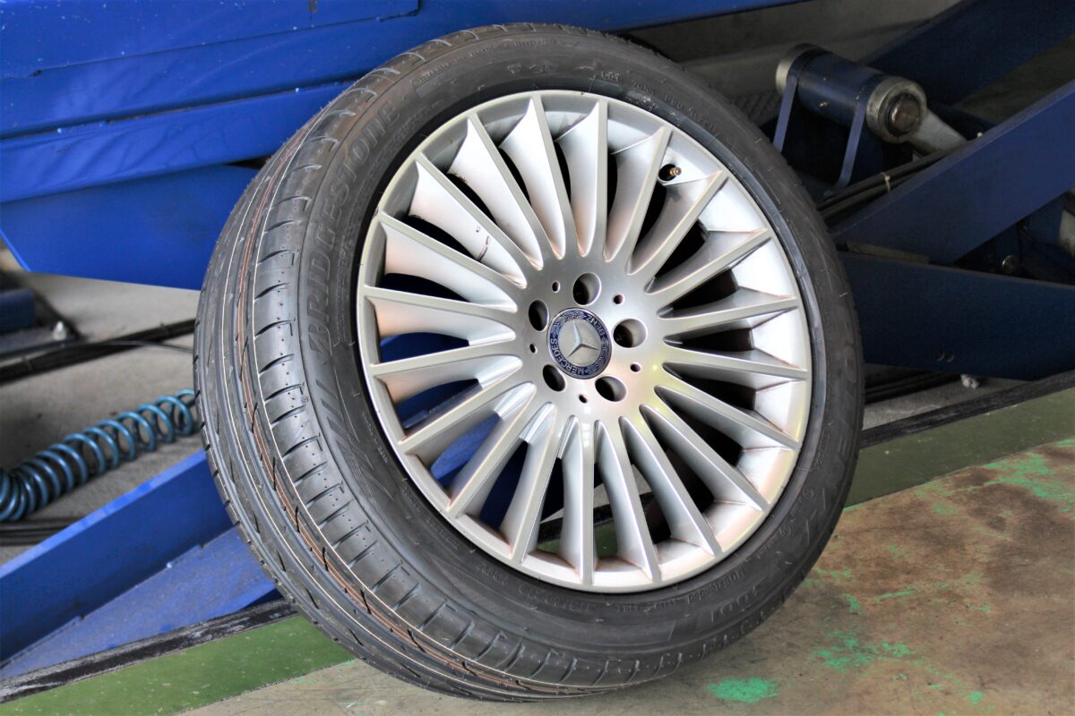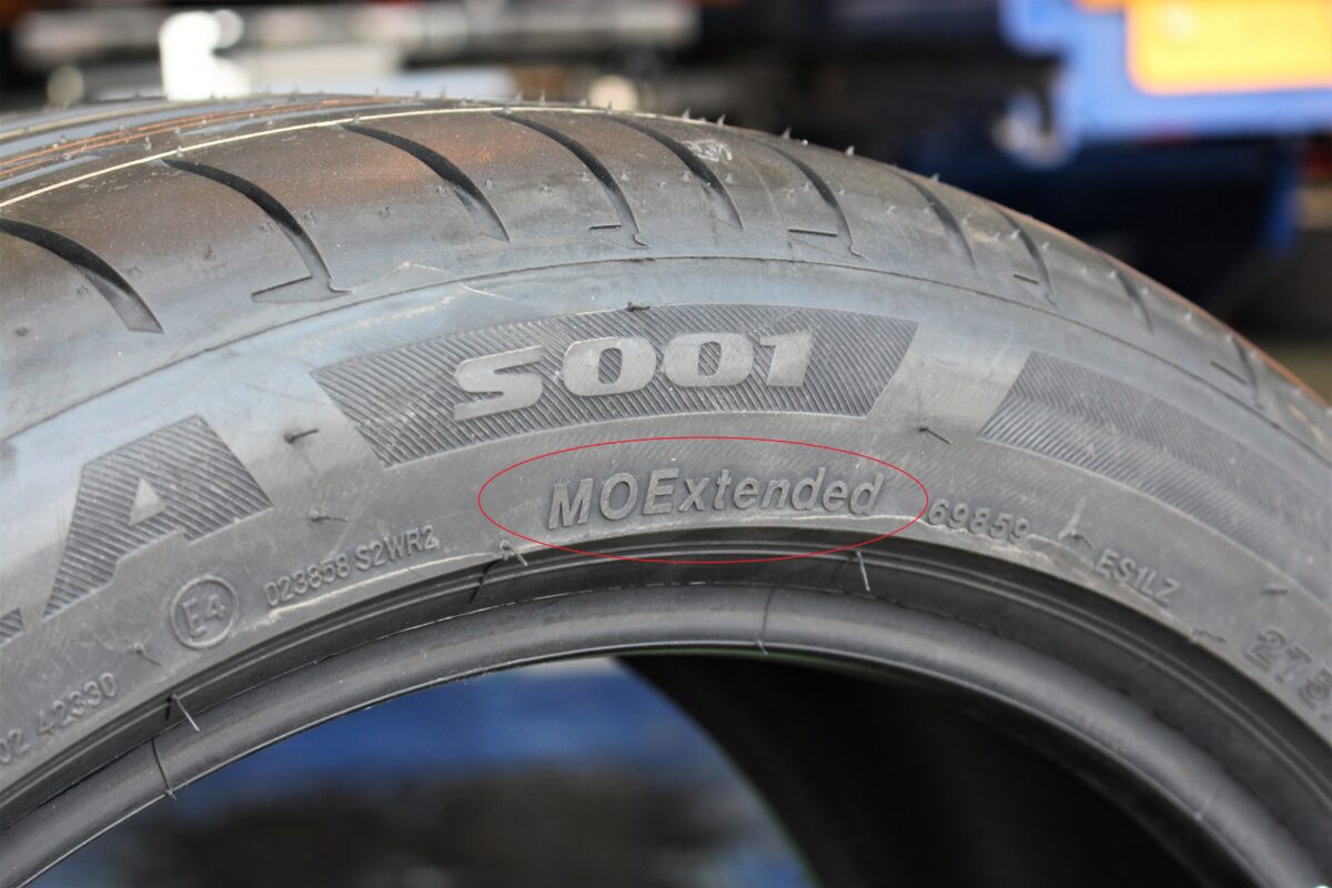 取付けるS001はメルセデス認証タイヤ。"MOExtended"のロゴがその証です。