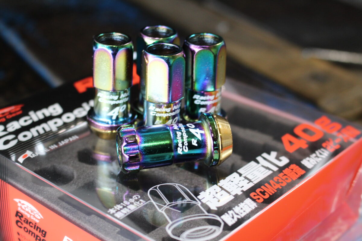 ナットは焼き色を添えたキョーエイのレーシングコンポジットナットで。