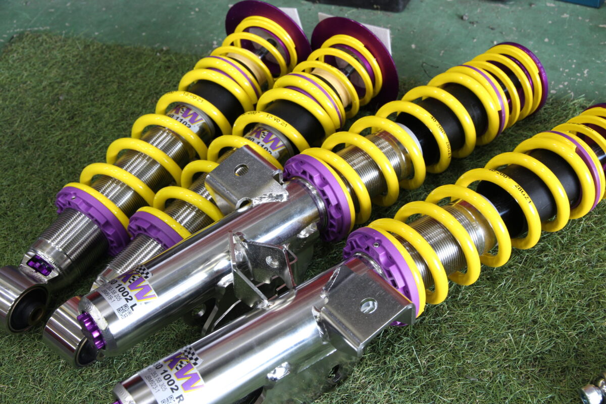 複筒式のKWはネジ式ですが低めの車高でセッティング可能なのが特徴です。