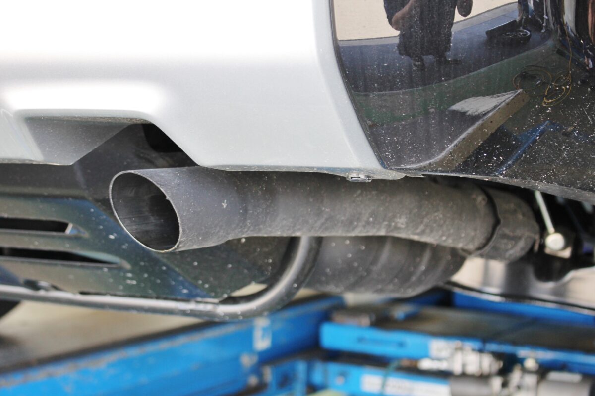 純正マフラーは、少しションボリな感じ、、、