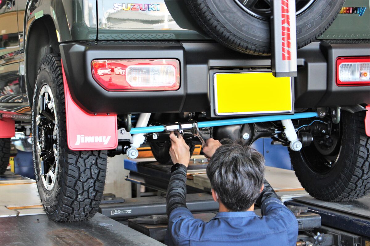 各パーツ取付後は、前後ラテラルロッドのターンバックル部を用いてデヅラ調整。
