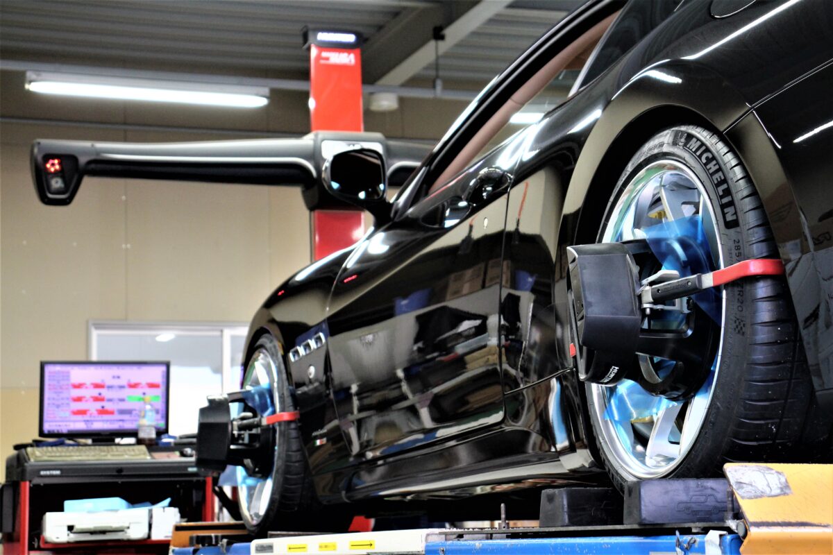 この差を埋めるには幾つかの方法が有りますが、今回のお車はアライメントを行う事で微調整が可能なお車なので