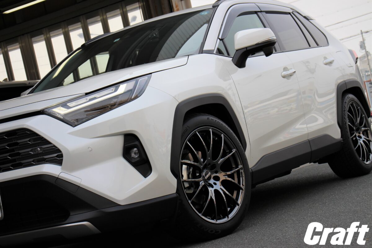RAV4にマルチピースの選択肢。 オフ系も良いけどコッチもイイネ♪ こんにちは!クラフト浜松店テラダです^^ 1月最後のご紹介はTOYOTA RAV4 以前ヤリスクロスをシャコタン化した常連M様のご紹介で当店をご用命いただきました^^ M様のシャコタン化ブログがコチラをクリック★ 今回もバッチリお任せください☆ TRDのエアロ装着ということもありノーマルでも車高は低め オーナーT様もローダウンは今回が「初」ということもあり 事前での打ち合わせは入念に行いました 今回はコチラのモデルでベースを作っていきます^^   ■RS-R BEST-i ご紹介いただいたM様のオススメということもあり初の車高調はRS-Rをチョイス 主流となる全長調整式に加え減衰調整は36段調整と細かなセッティングが可能 なにより使うシーンに応じて車高のリセッティングができるのがいいですね^^ 今日もメカニック酒井ちゃん頼みます! サクッと取り付けは完了しましたが大事なのはここから 理想のスタイルに近づける為、車高の微調整を行っていきます 再調整には+αお時間はかかりますがこれも完成度の高いクルマに仕上げる為! ご要望頂ければ一緒に確認しながらセッティングすることもできますヨ^^ メインのホイールはコチラ!   ■WORK SCHWERT SG1 (20inch) マルチピースを中心に絶大な人気を誇るワークホイール ステップ(段付き)リム仕様・センターオーナメントはオプションのWロゴに変更し さりげなく脱・定番仕様へ 2ピースのメリットを生かしインセットを煮詰めて手に入れた深リムもポイント タイヤは個人的にイチ押しなコンチネンタル エクストリームコンタクトDWS06プラスをセット モデルのネーミング通りD(ドライ)・W(ウェット)・S(スノー)とオールラウンドに対応 タイヤサイドのデザインもすっきりしていてカッコ良くないですか!? サイズバリエーションも豊富ですのでドレスアップを検討中の方いかがでしょう? 納得の仕上がりになったことで仕上げのアライメント調整へ 3Dテスターを駆使してキッチリ調整をかけていきます ローダウン時には必須項目!もちろんアライメントのみの作業も行っていますよ^^ 【アライメント診断・調整(1台)】 ●一般様価格 ¥25,400(込)  ●クラフトメンバー様価格 ¥20,300(込) ※国産車、輸入車の一部車種、特殊車両は除く。 お車や作業内容によっては、別途作業工賃が発生する場合や、 作業がお受けできない場合がございます。詳しくは店舗までご相談ください。 完成後がコチラ!   WHEEL:WORK SCHWERT SG1(ステップリム)                (Fr/Rr)9.0-20 (ブラックカットクリア) TIRE:Continental EXTREME CONTACT DWS06 Plus       (Fr/Rr)255/45R20 SUSPENSION:RS-R BEST-i   【BEFORE】 【AFTER】 冬仕様から一足早く夏仕様へ☆ 低めにセッティングし足もとには20インチを組みあわせ。 OFF系もイケますがONもかなりイケてます^^ RAV4にステップリムの選択肢。まだまだ少ないので注目度バツグンです! 今回タイヤサイズは少し大きめの【255/45R20】を選択   過度なローダウンをしなくてもタイヤ外径アップ分で フェンダーのすき間を埋めるセッティングに。 地上高もしっかり確保しSUVらしい印象も残しました ご用命いただきましたT様、ご紹介いただいたM様この度はありがとうございました^^ またご不明な点やここカスタムしてみたい!なんてことがあればまたいつでもご来店下さい 今後ともクラフト浜松店をよろしくお願いします☆ 浜松店/URBAN OFF CRAFT 浜松店 住所〒435-0016 静岡県浜松市東区和田町844 電話番号053-462-7611 営業時間【平日・土曜】10:30~19:30 【日曜・祝日】10:00~18:00 作業受付時間【平日・土曜】18:30まで、【日曜・祝日】17:00まで