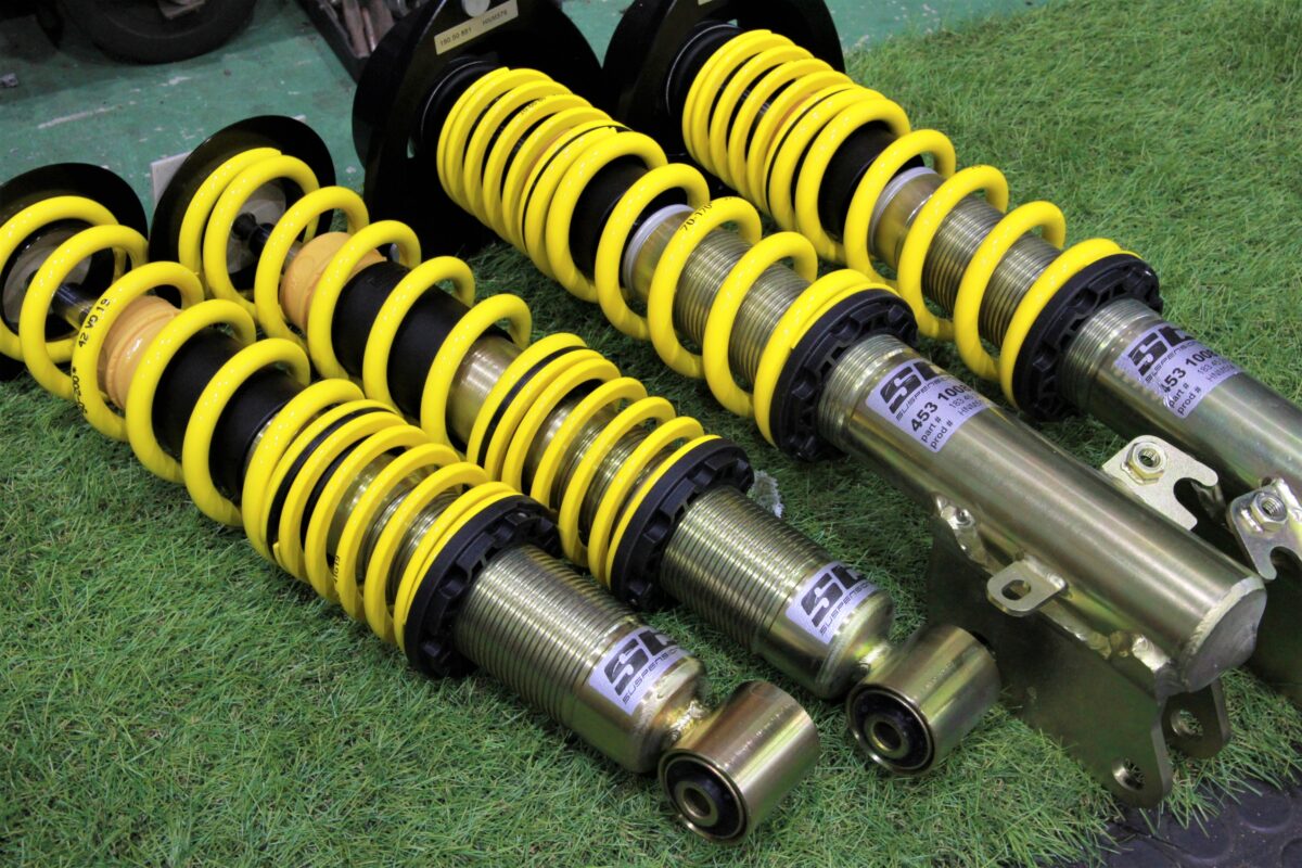 今回お取り付けさせて頂く車高調のSTとは